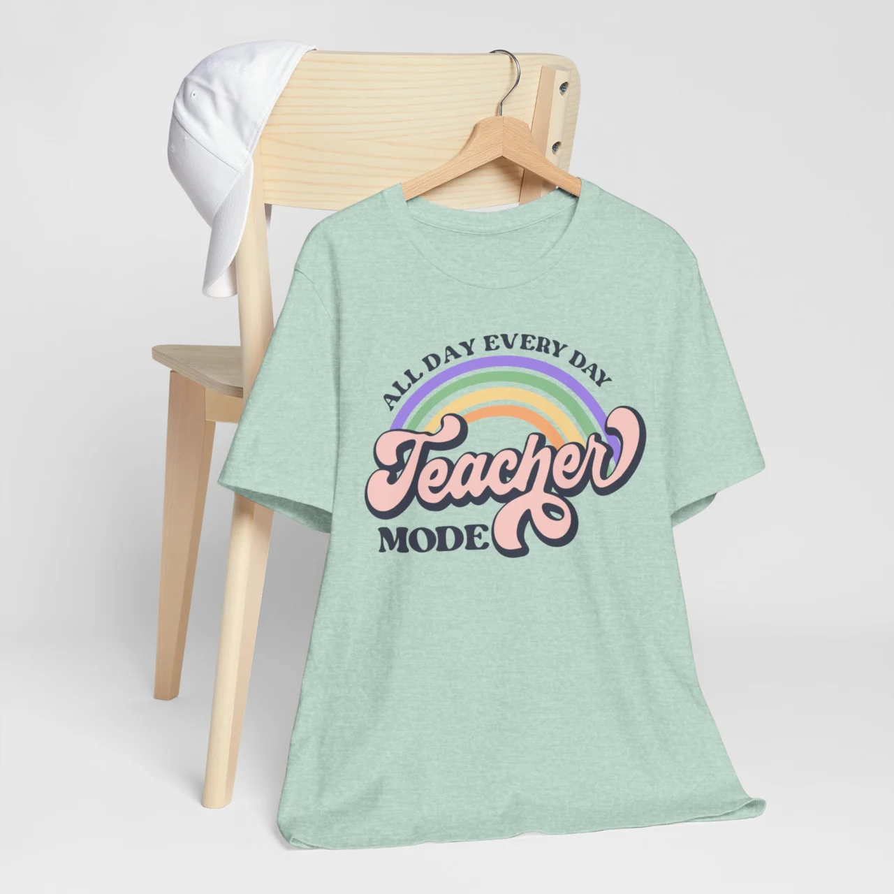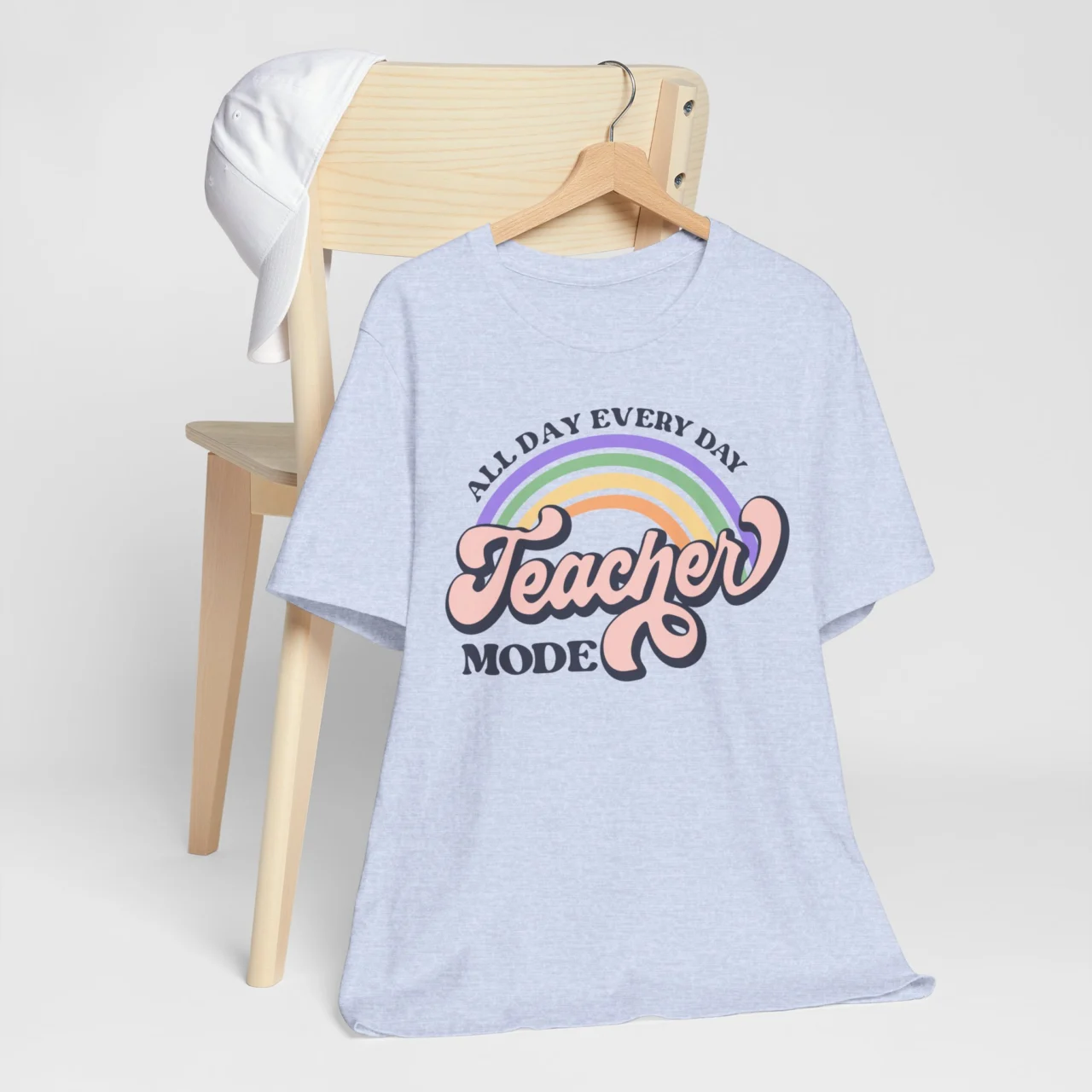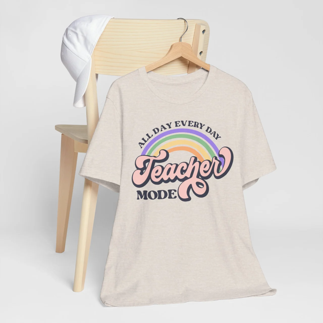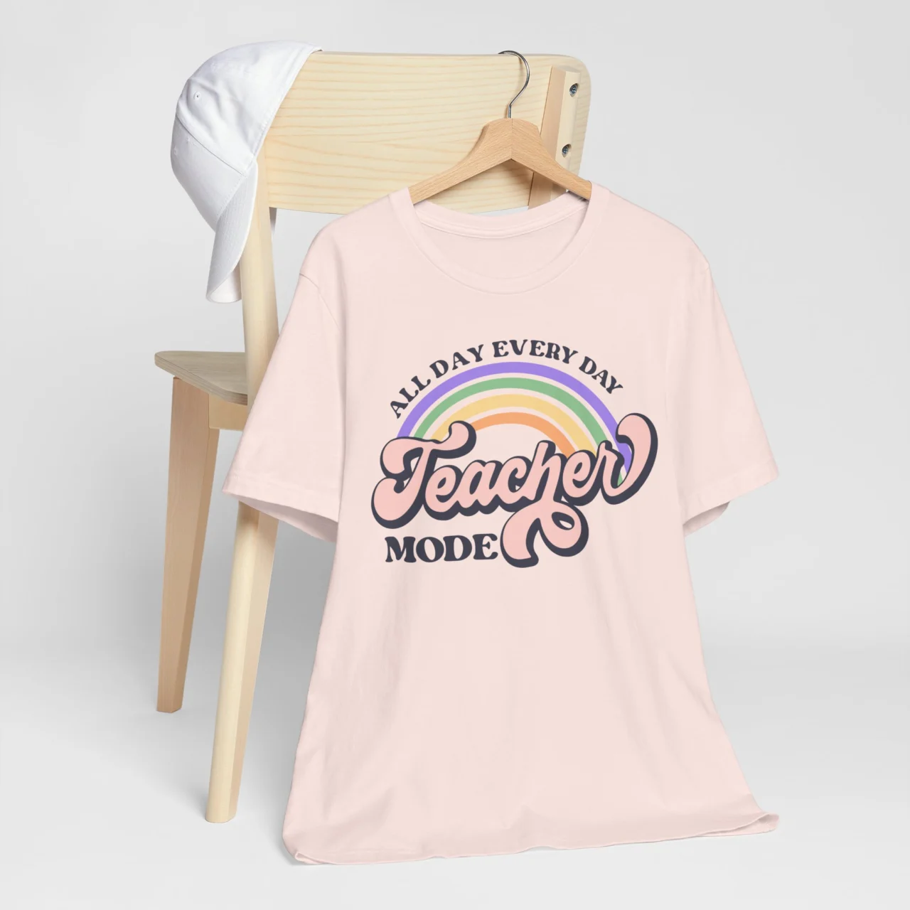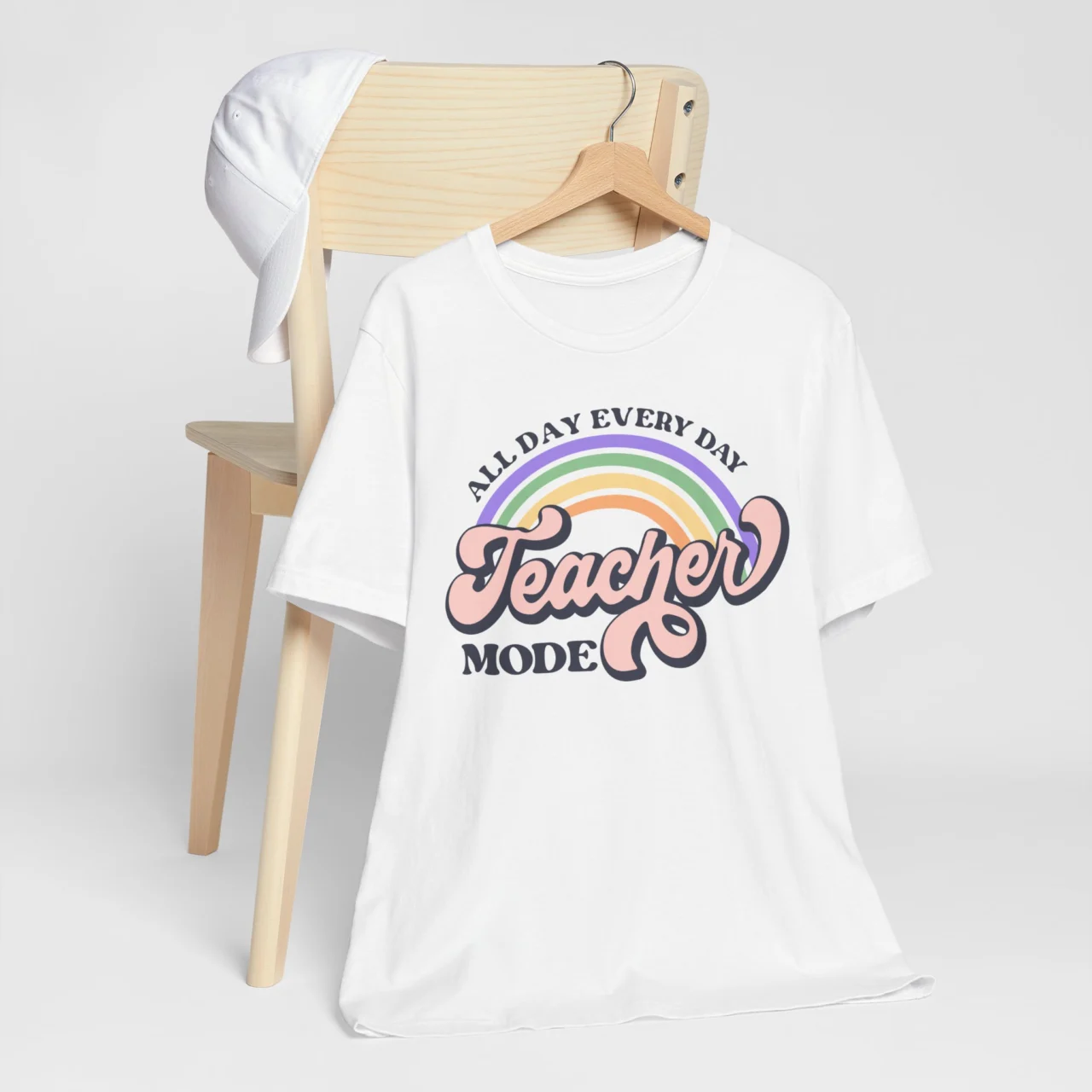 All Day Every Day Teacher Mode T-Shirt – Teacher Life Tee – Rainbow Graphic T-Shirt – Fun Teacher Appreciation Shirt – Colorful School Classroom Shirt – Teacher Gift Everyday Wear T-Shirt – TeesLanding