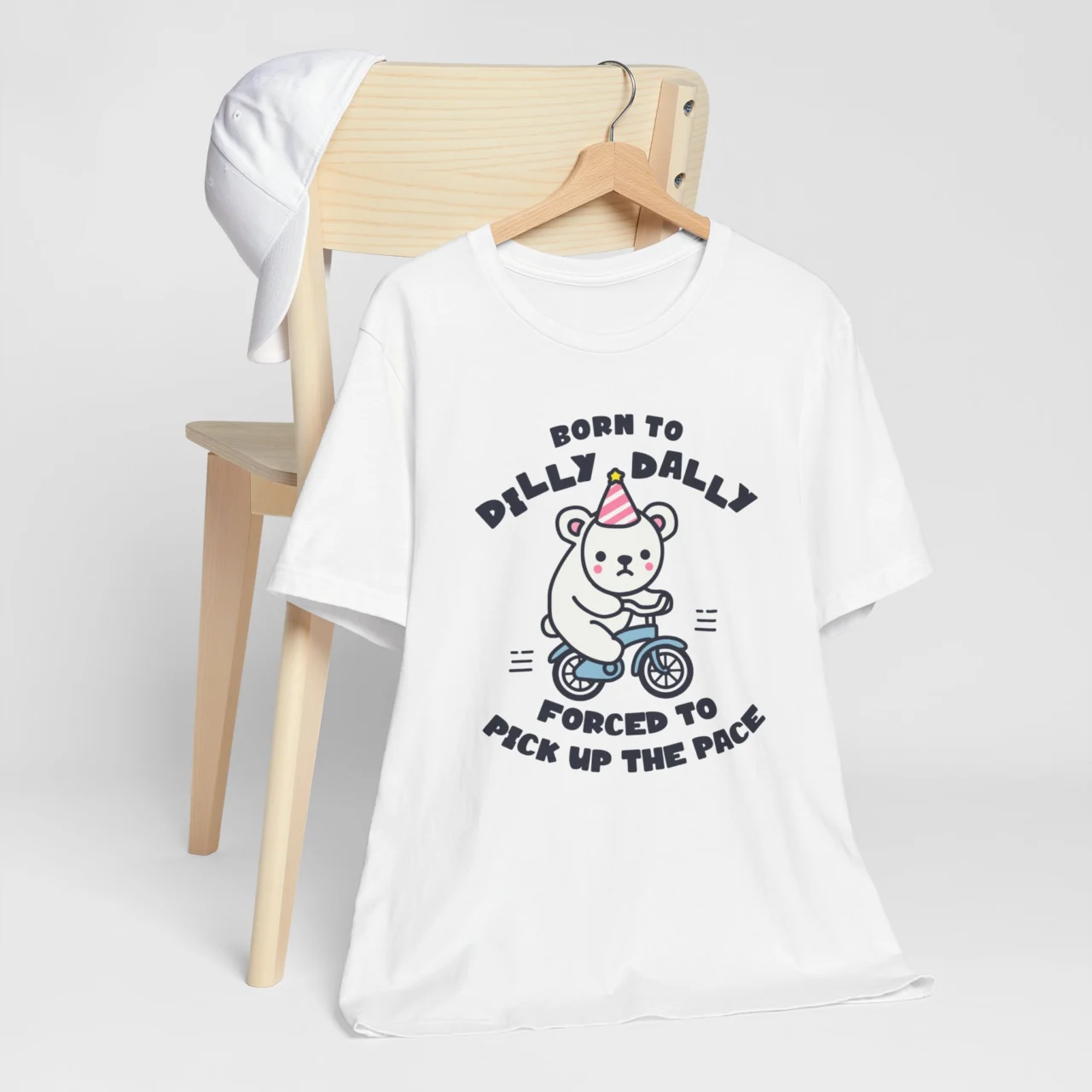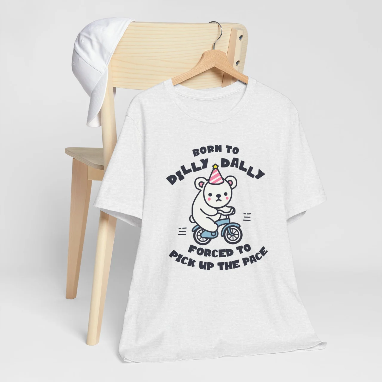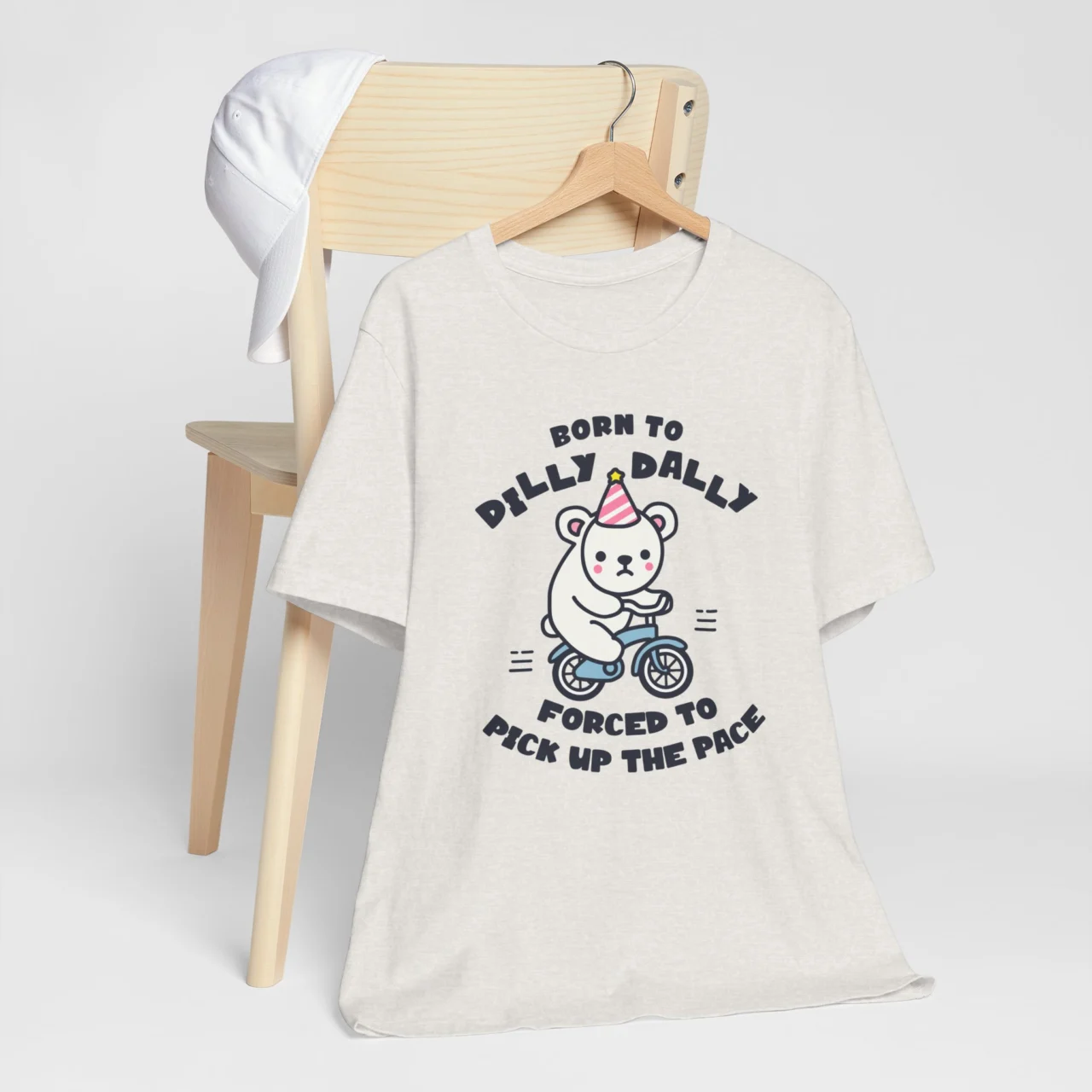 Born to Dilly Dally Forced to Pick Up the Pace T-Shirt – Funny Cycling Bear Graphic Tee – Lazy Chill Vibes Shirt – Quirky Animal Lover Tee – TeesLanding