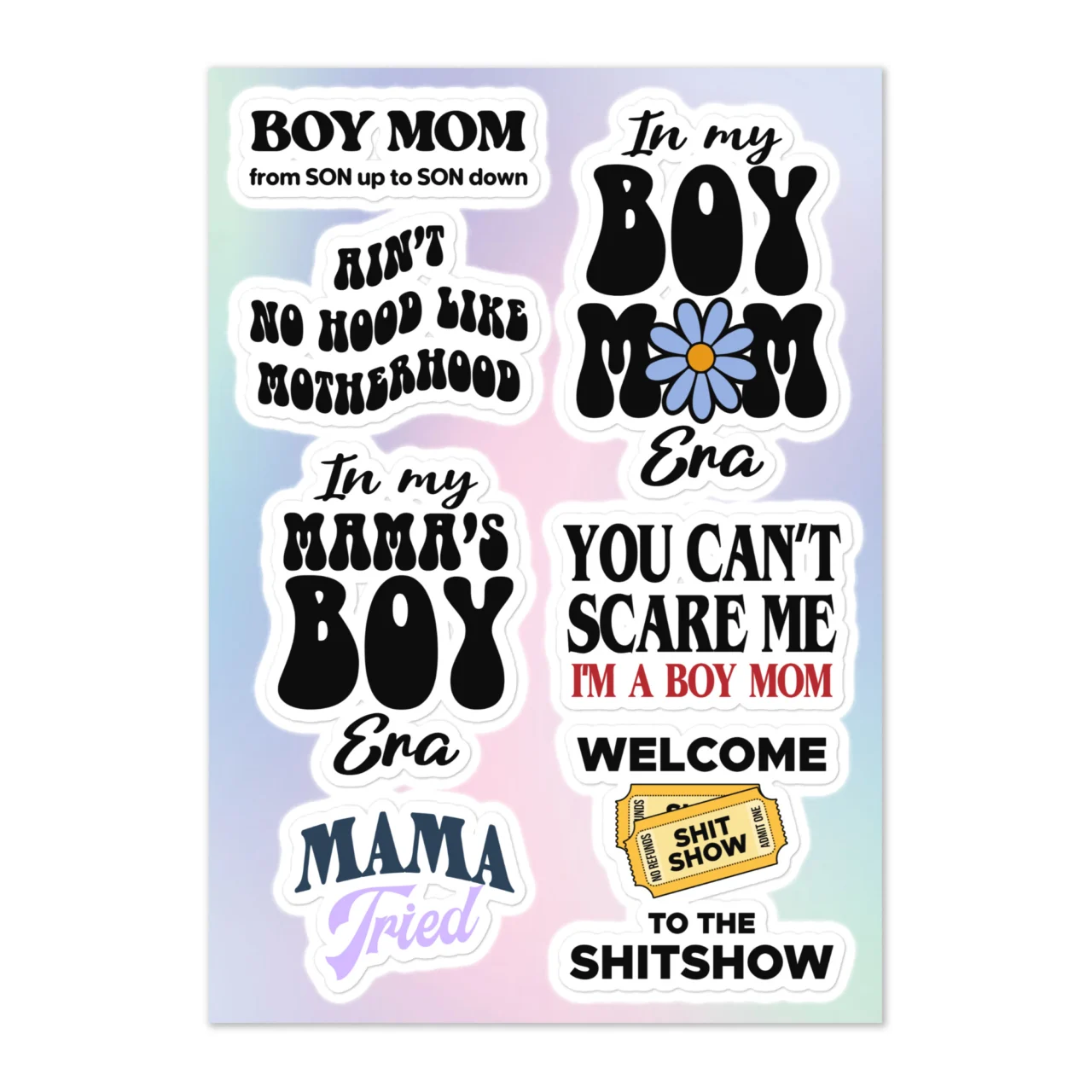 Boy Mom Sticker Sheet – ‘In My Boy Mom Era’ ‘You Can’t Scare Me I’m A Boy Mom’ ‘From Son Up To Son Down’ – Funny Boy Mom Decals – Mama Sticker Pack