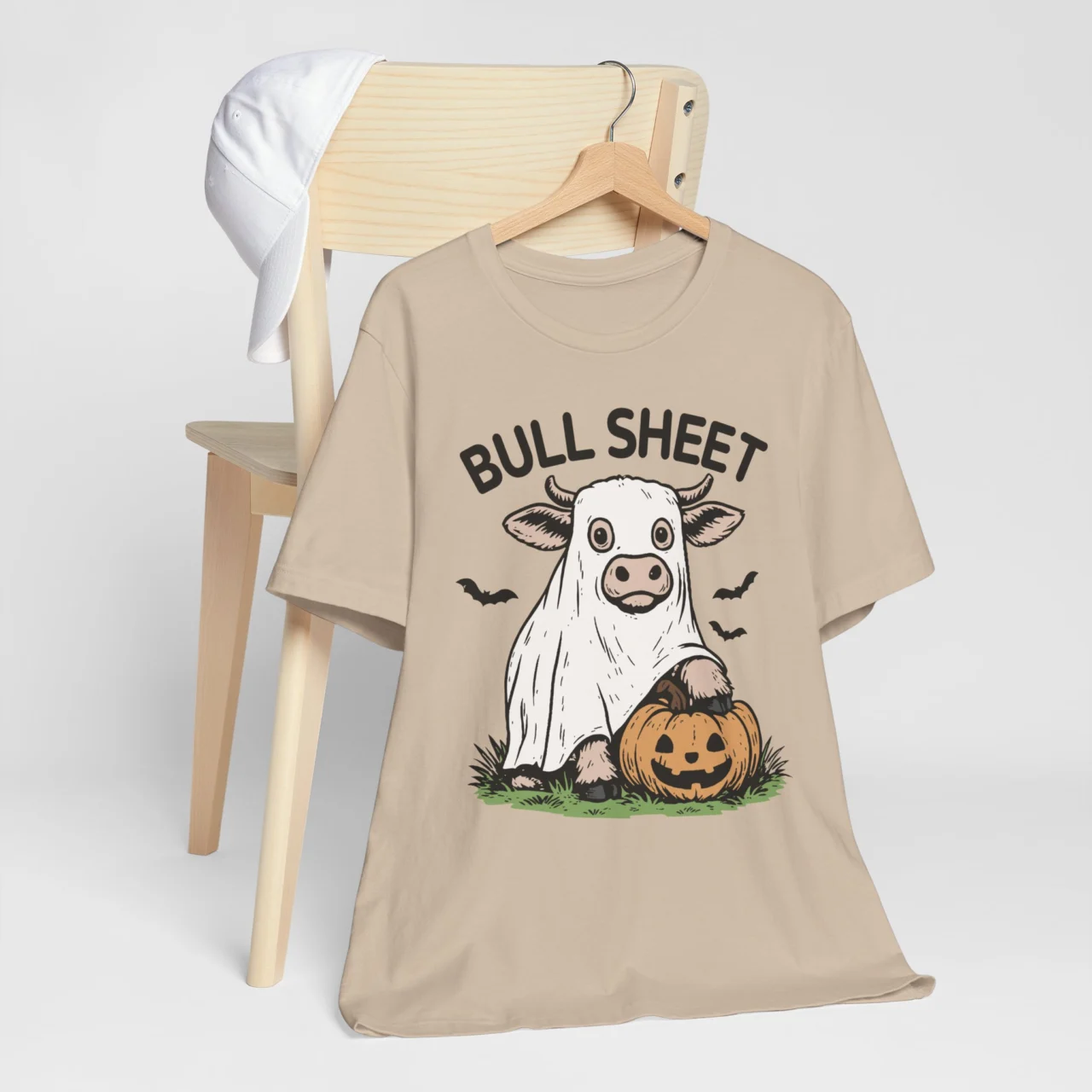 The Bull Sheet Costume Shirt brings spooky farmyard humor to life! Featuring a hilarious ghost cow design, this punny Halloween tee is perfect for cow lovers who enjoy a little “moo-ronic” humor. Whether you’re dressing up for a costume party or chilling at home, this cozy unisex shirt keeps it light, funny, and totally boo-tiful.