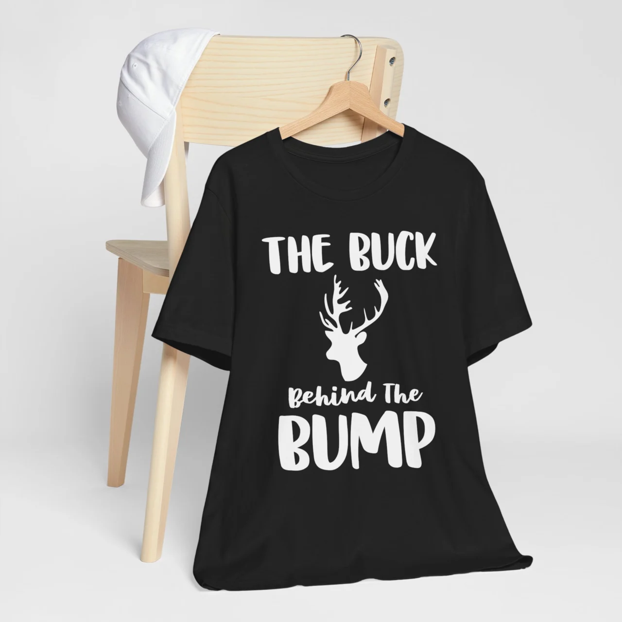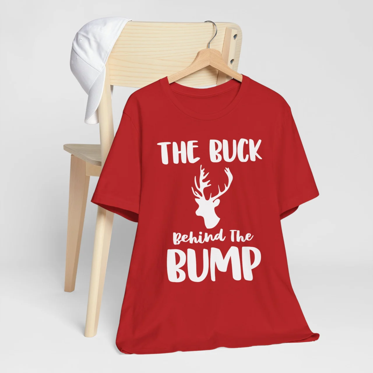 The The Buck Behind the Bump Shirt is the perfect Dad matching Christmas announcement tee! Features a fun deer silhouette. The perfect Partner Holiday Reveal Outfit and a hilarious Expecting Father T-Shirt that pairs with the “Oh Deer” shirt.