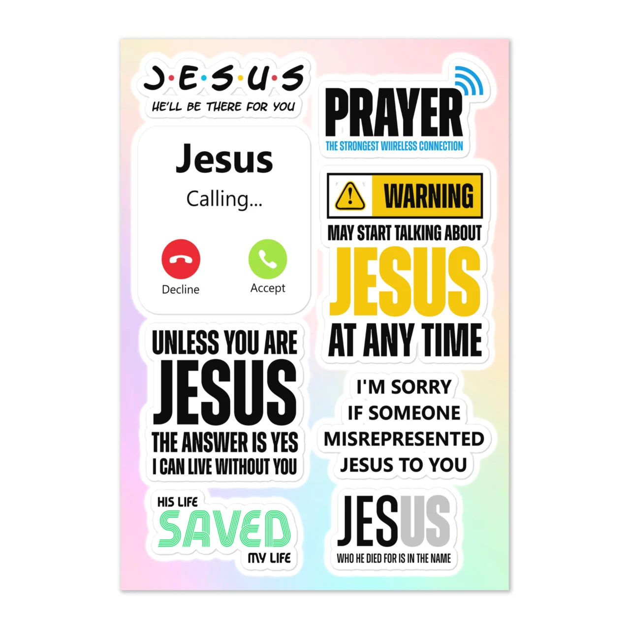 Funny Christian Humor Sticker Sheet – ‘Jesus He’ll Be There For You’ Friends Pun – ‘Warning May Start Talking About Jesus’ – Witty Faith Decals – Clever Christian Sticker Pack