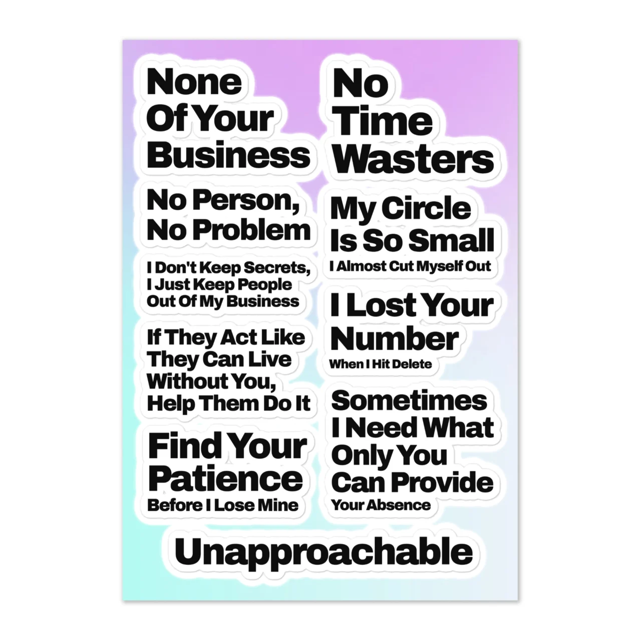 Funny Personal Space Sticker Sheet – Boundaries Decals – ‘None Of Your Business’ – Sarcastic Boundary-Setting Humor Sticker Pack – Laptop Water Bottle Stickers