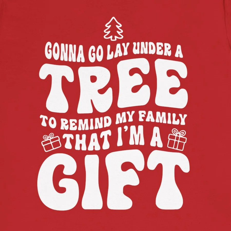 #GonnaGoLayUnderATree #SarcasticChristmas #ImAGift #FunnyChristmasTee #HolidayHumor #SelfLoveTee #XmasGift