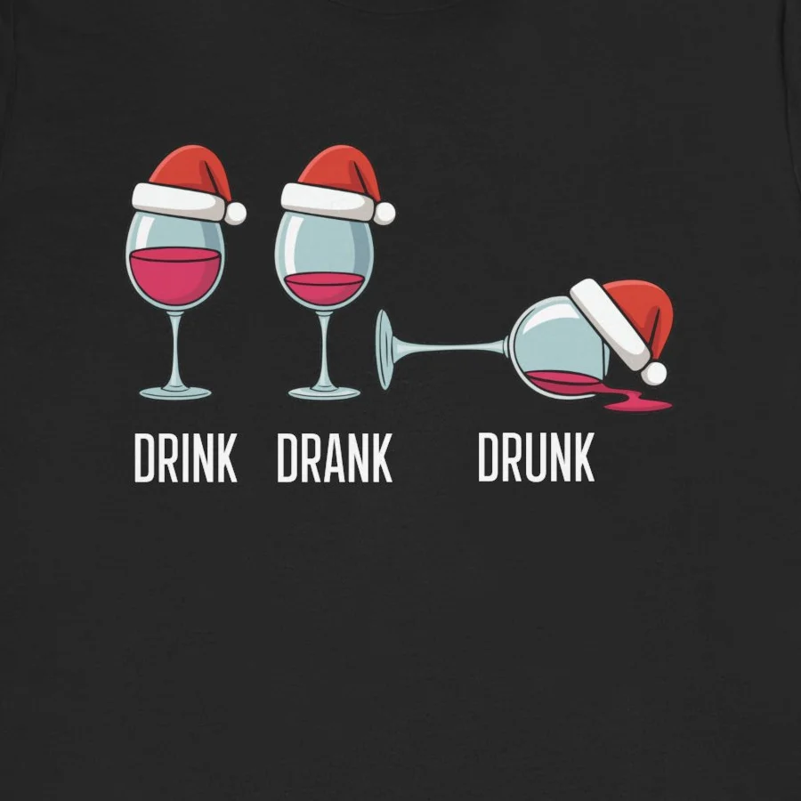 #DrinkDrankDrunk #WineLoverGift #FunnyChristmasTee #HolidayDrinking #ChristmasPartyAlcohol #WineGlassHumor #AdultHumor