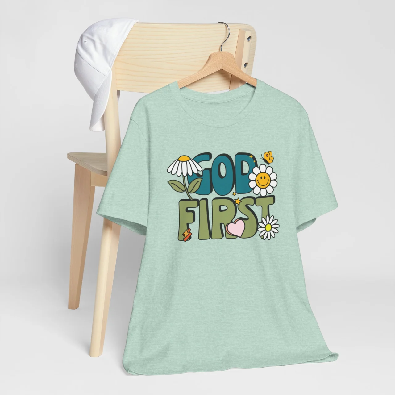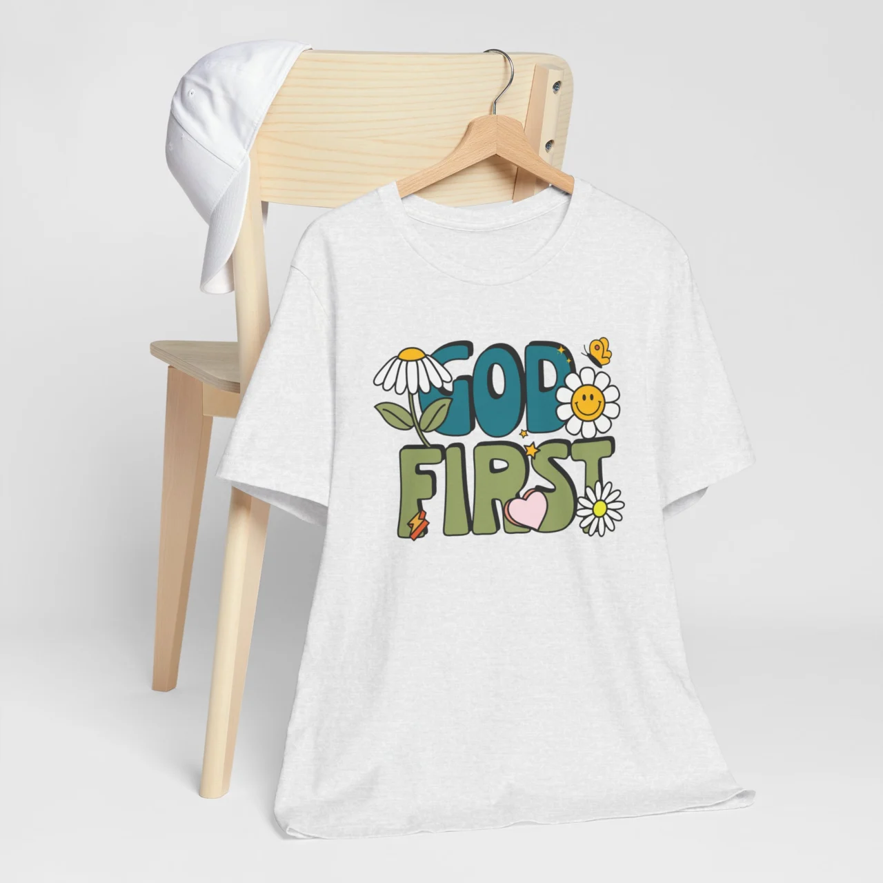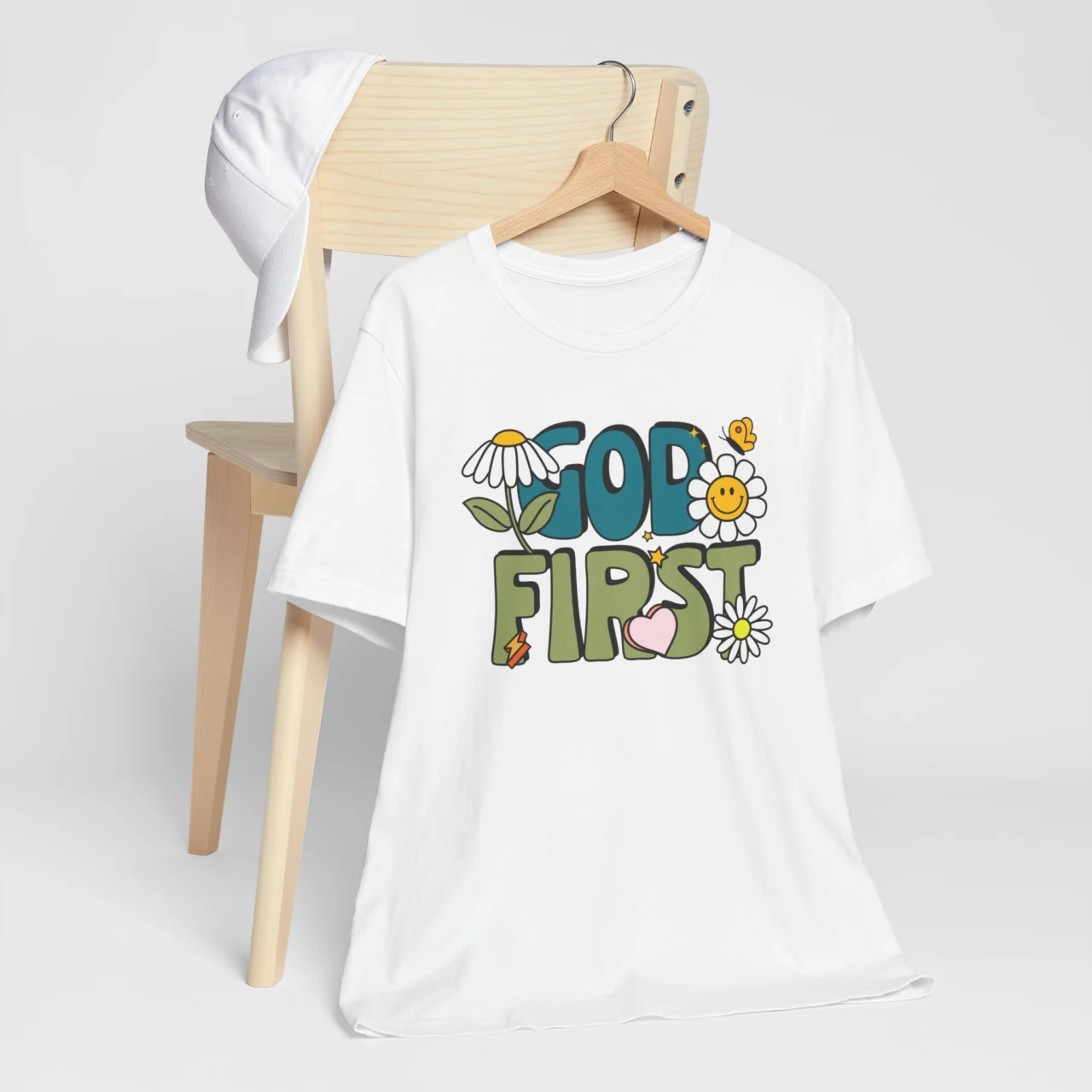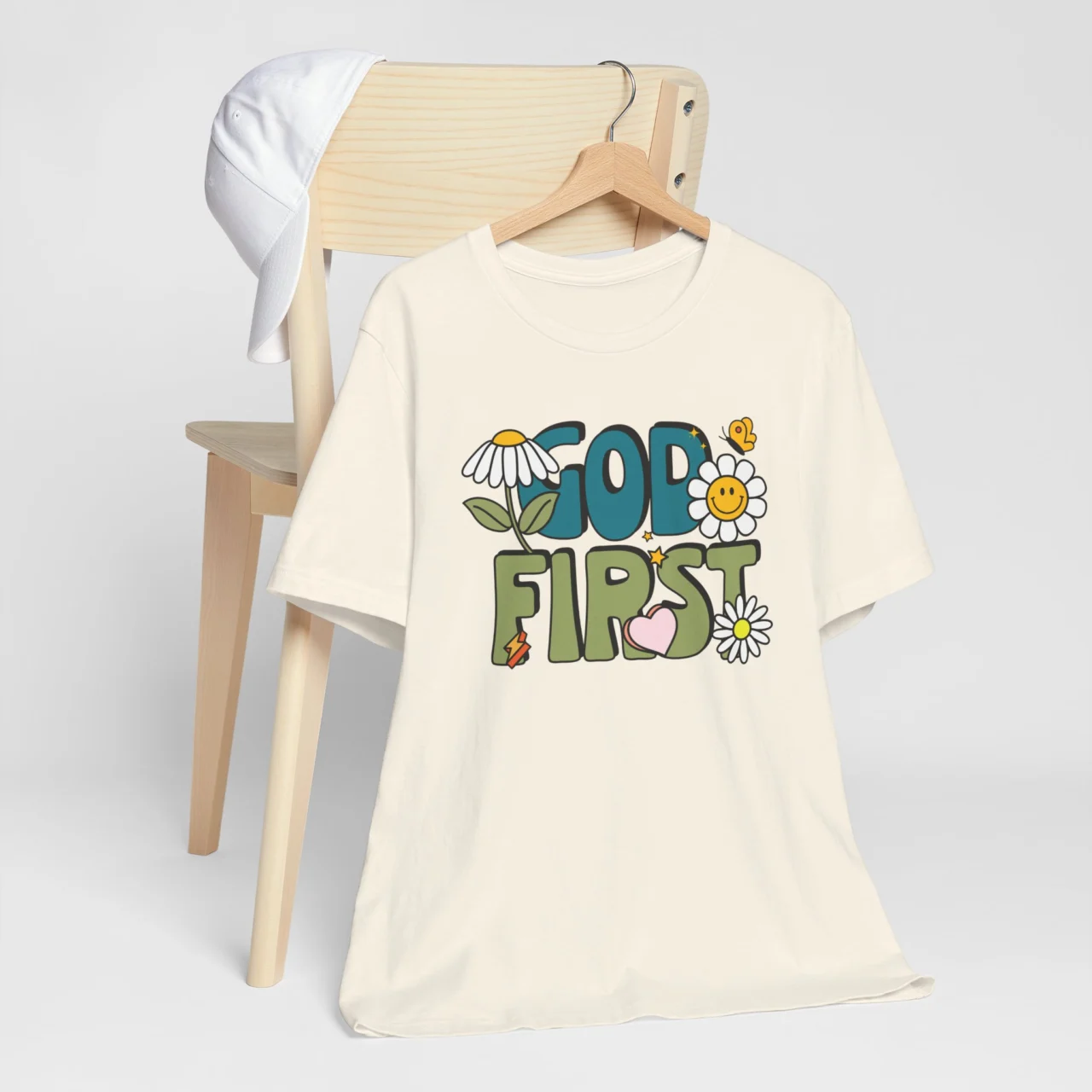 God First Groovy Christian T-Shirt – Retro Christian Faith Graphic Tee – Religious Jesus Apparel – Faith Based Gift Shirt – Religious Baptism Tee – Christian Gift – TeesLanding