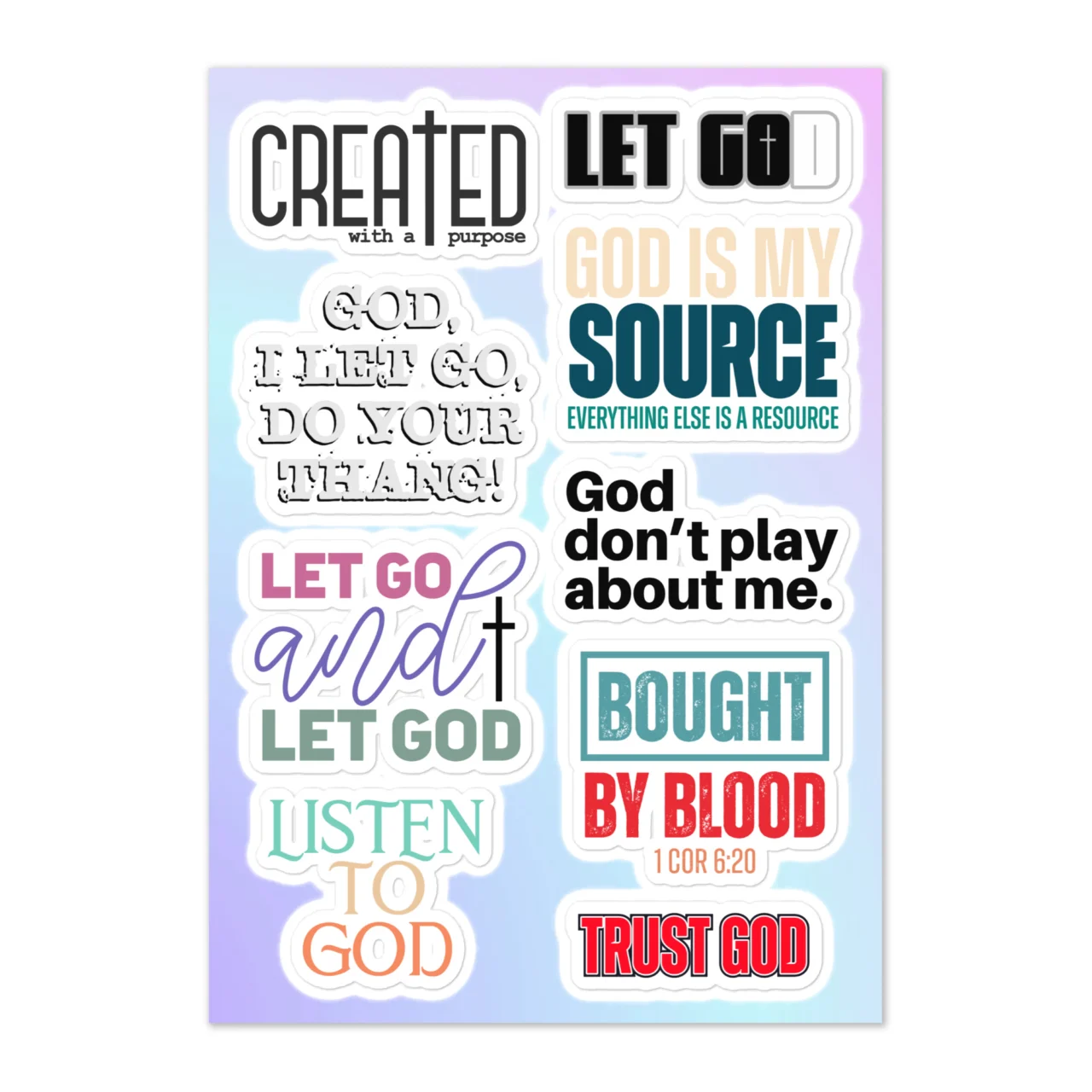 God Is My Everything Sticker Sheet – ‘Let Go And Let God’ ‘God Is My Source’ ‘Trust God’ – Christian Surrender Decals – Bible Sticker Pack