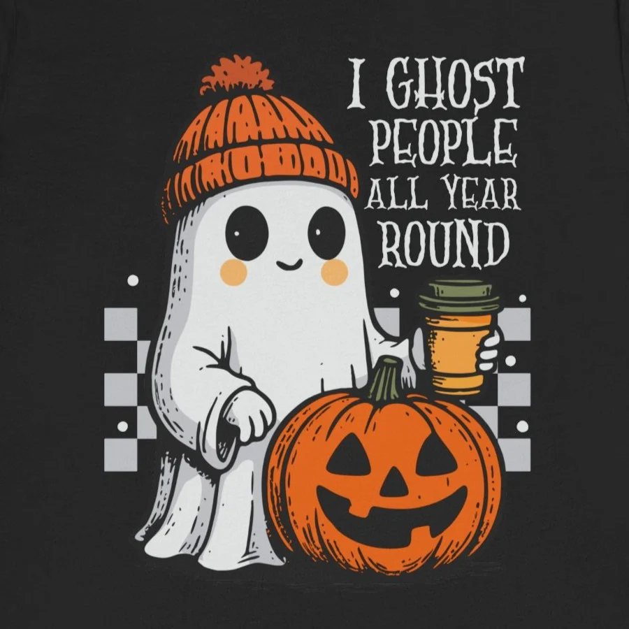 The I Ghost People All Year Round Shirt is for the introverts who’ve mastered the art of disappearing, Halloween or not. With a cute retro ghost design and cozy unisex fit, this shirt is perfect for spooky lovers who prefer quiet nights in. It’s playful, relatable, and comfy enough to haunt your wardrobe all year long.