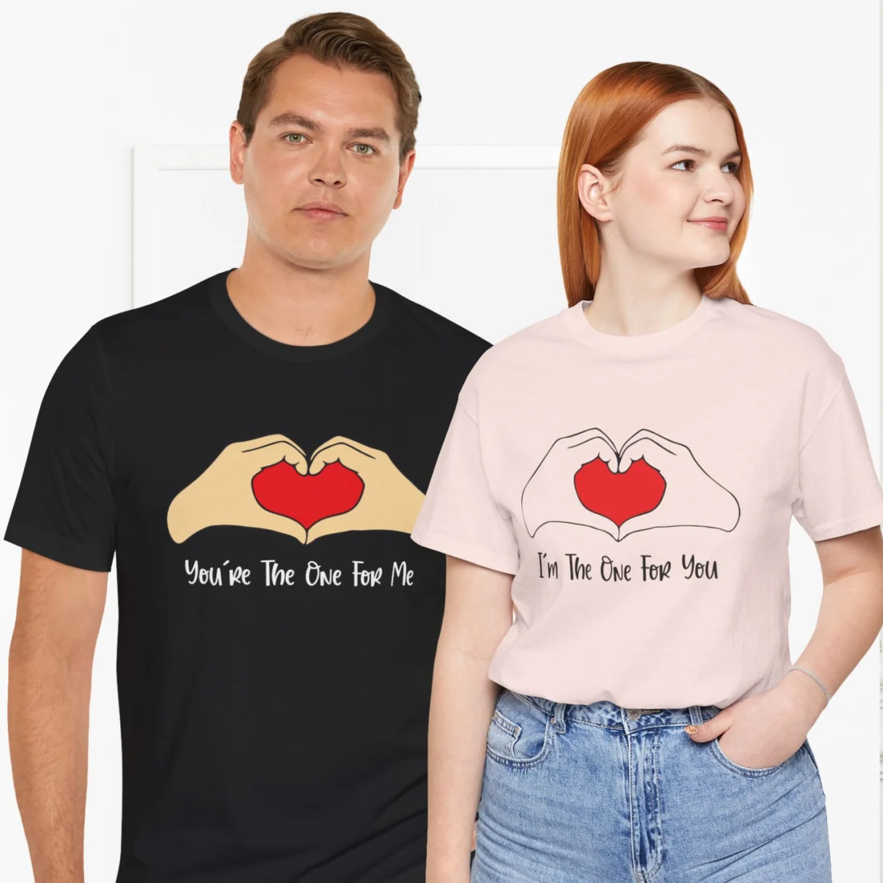 Let the world know you’ve found your “person” with the You’re The One For Me & I’m The One For You Matching Shirts Set! This duo is designed for the couple that isn’t afraid to be a little “mushy” and wants a look that is as unique as their bond. The design features a charming hand-heart illustration with a vibrant red heart at the center, symbolizing a love that is held close.