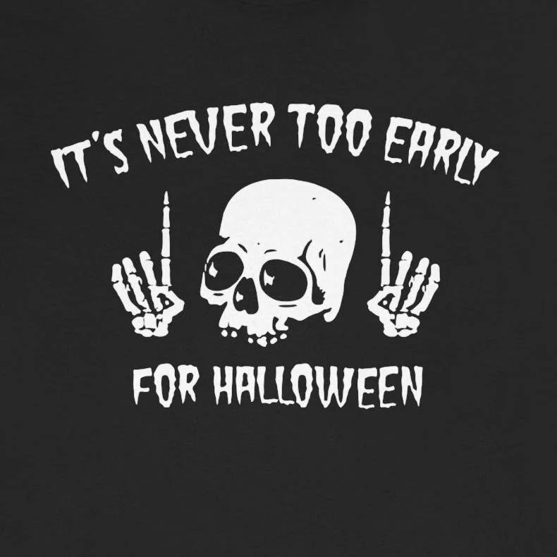 Its Never Too Early for Halloween Shirt – Funny Skeleton Tee – Spooky Season Shirt, Halloween Party Tee, Skull Graphic T-Shirt, Fall Fashion, Halloween Party Outfit, Unisex Casual Wear – TeesLanding
