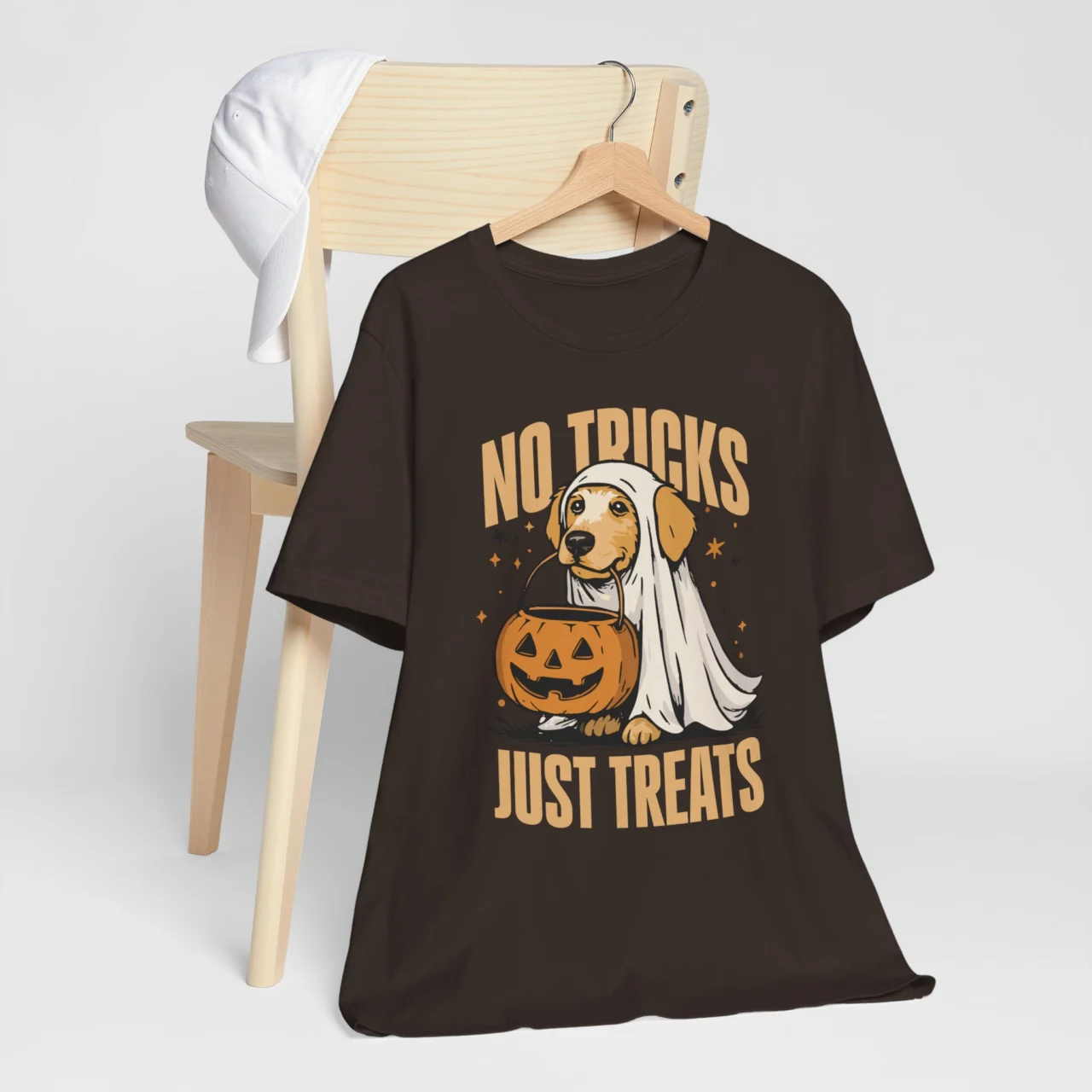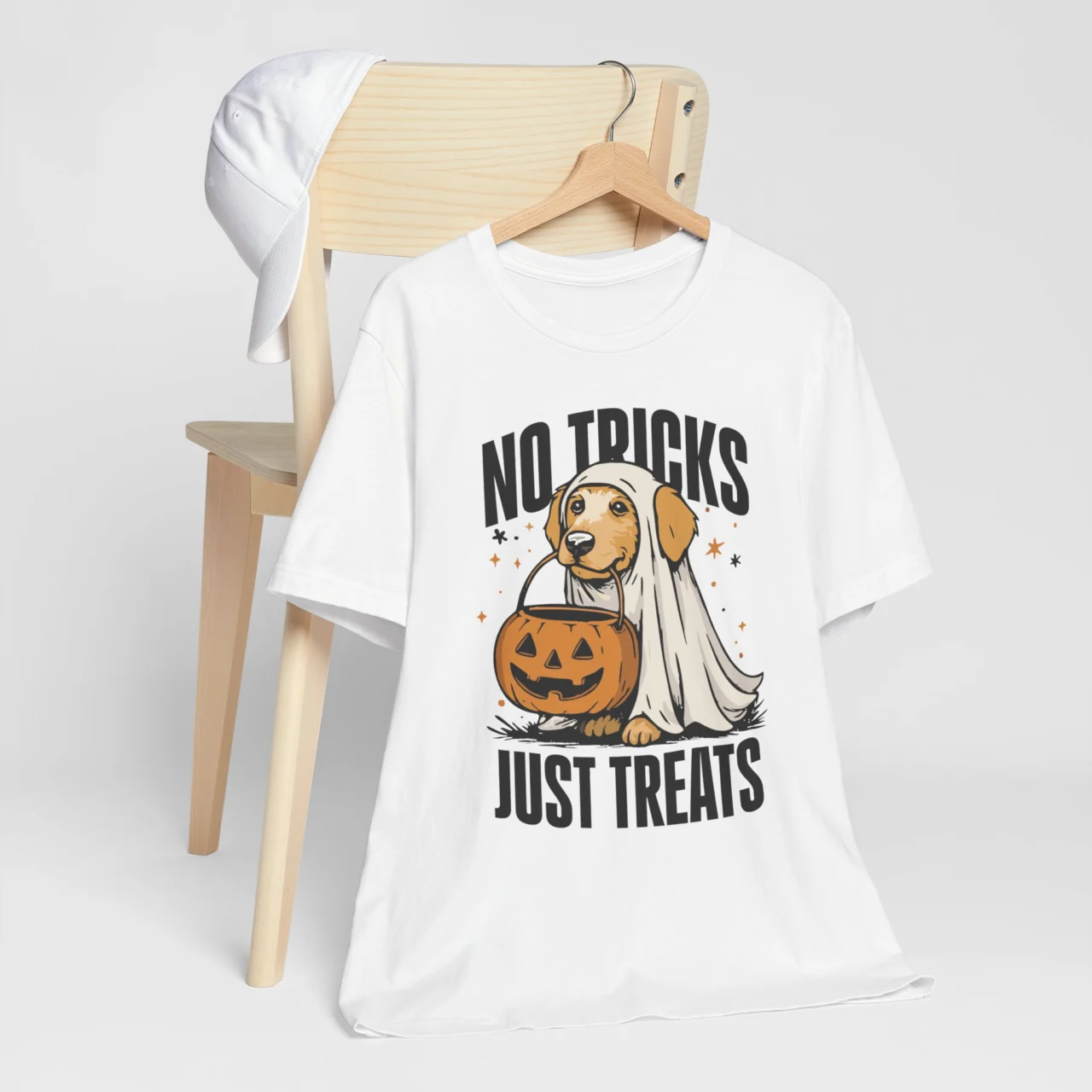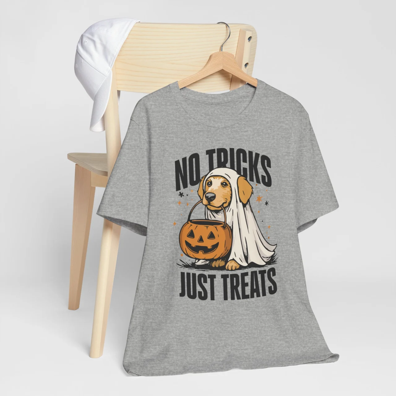 The No Tricks Just Treats Halloween Dog Tee is for dog lovers who know that pups deserve all the treats! Featuring adorable ghost dog in costume, this cute Halloween shirt makes a fun addition to your spooky wardrobe. Perfect for dog moms, pet parents, and anyone celebrating Halloween with their furry friend, it’s comfy, funny, and full of pawsitive vibes.