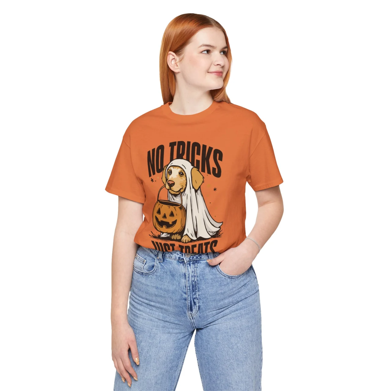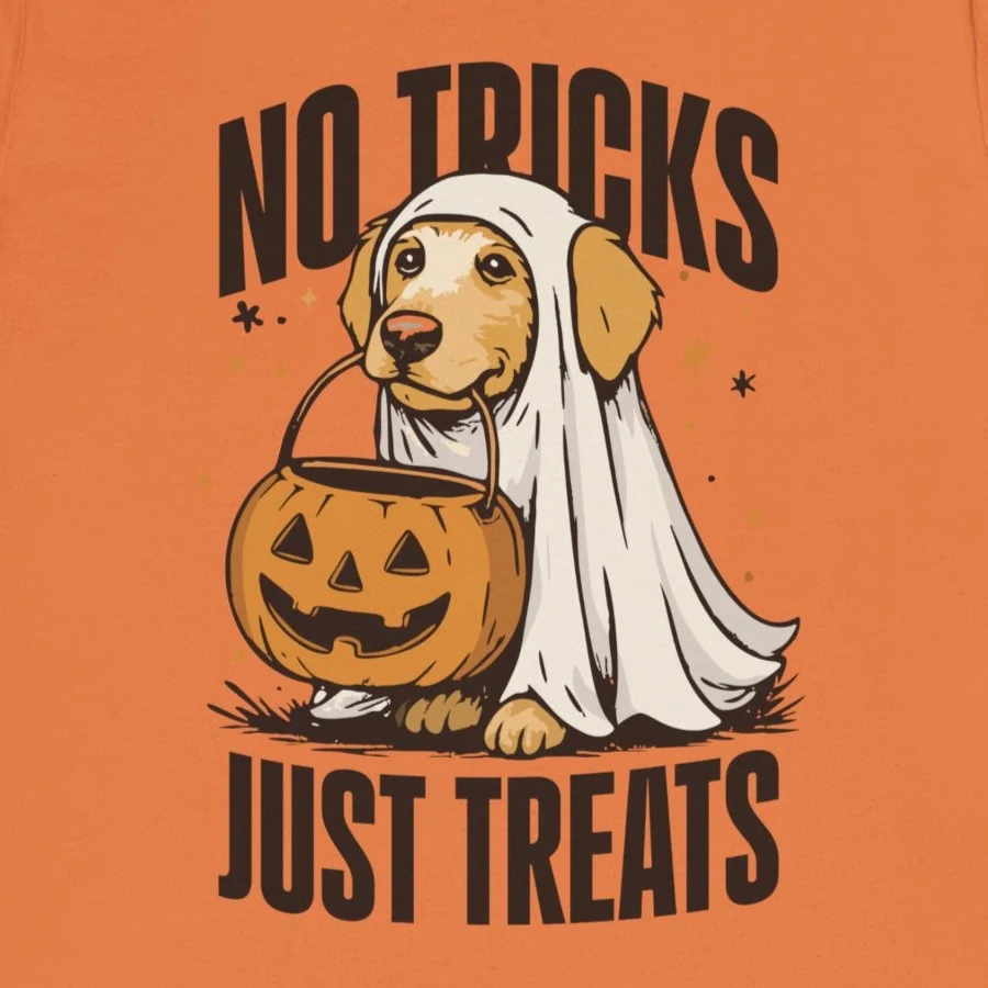 No Tricks Just Treats Halloween Dog Shirt – Funny Dog Lover Tee, Retro Dog Ghost T-Shirt, Spooky Season Pet Owner Top, Cute Halloween Dog Mom Shirt, Trick or Treat Dog Tee, Halloween Pet Shirt, Gift for Dog Lovers, Halloween Costume Shirt | TeesLanding