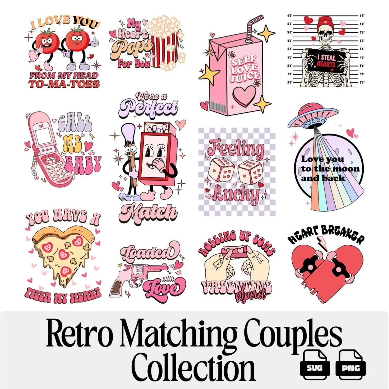 Retro Matching Couples SVG PNG Design Bundle – SVG & PNG Files for Custom Couple Gifts, Mugs & Valentine’s Crafts