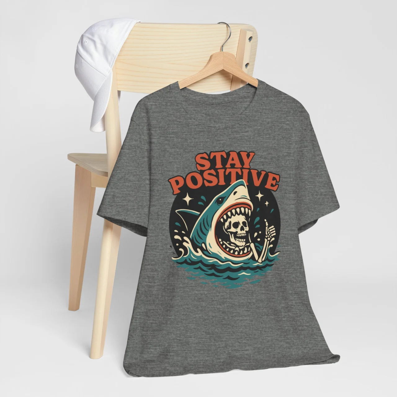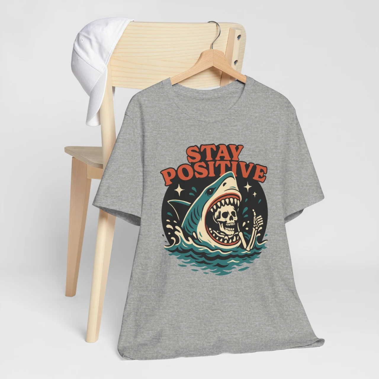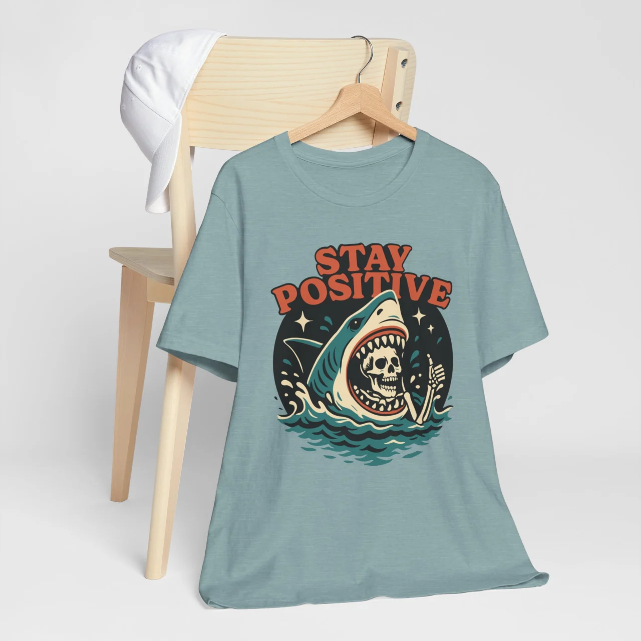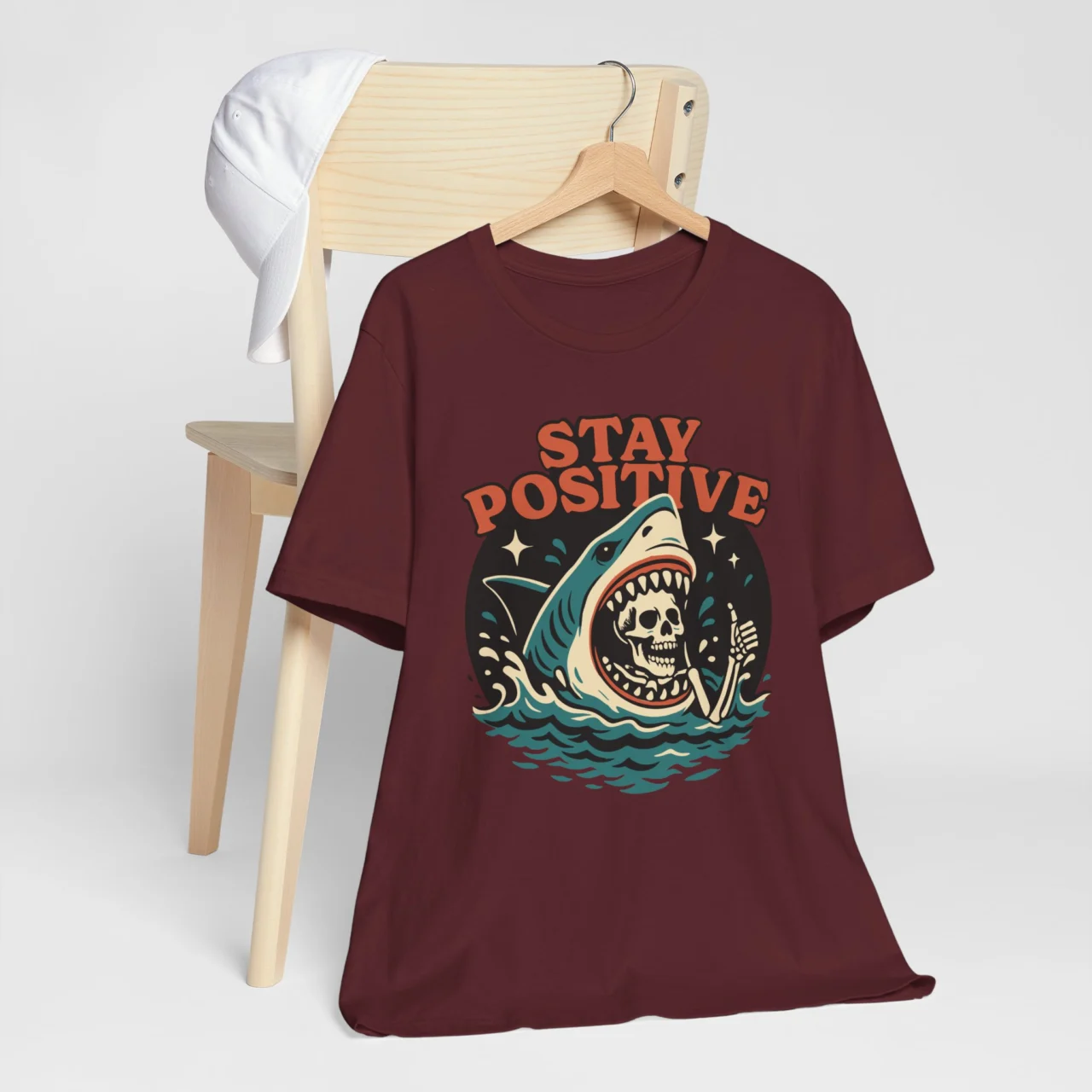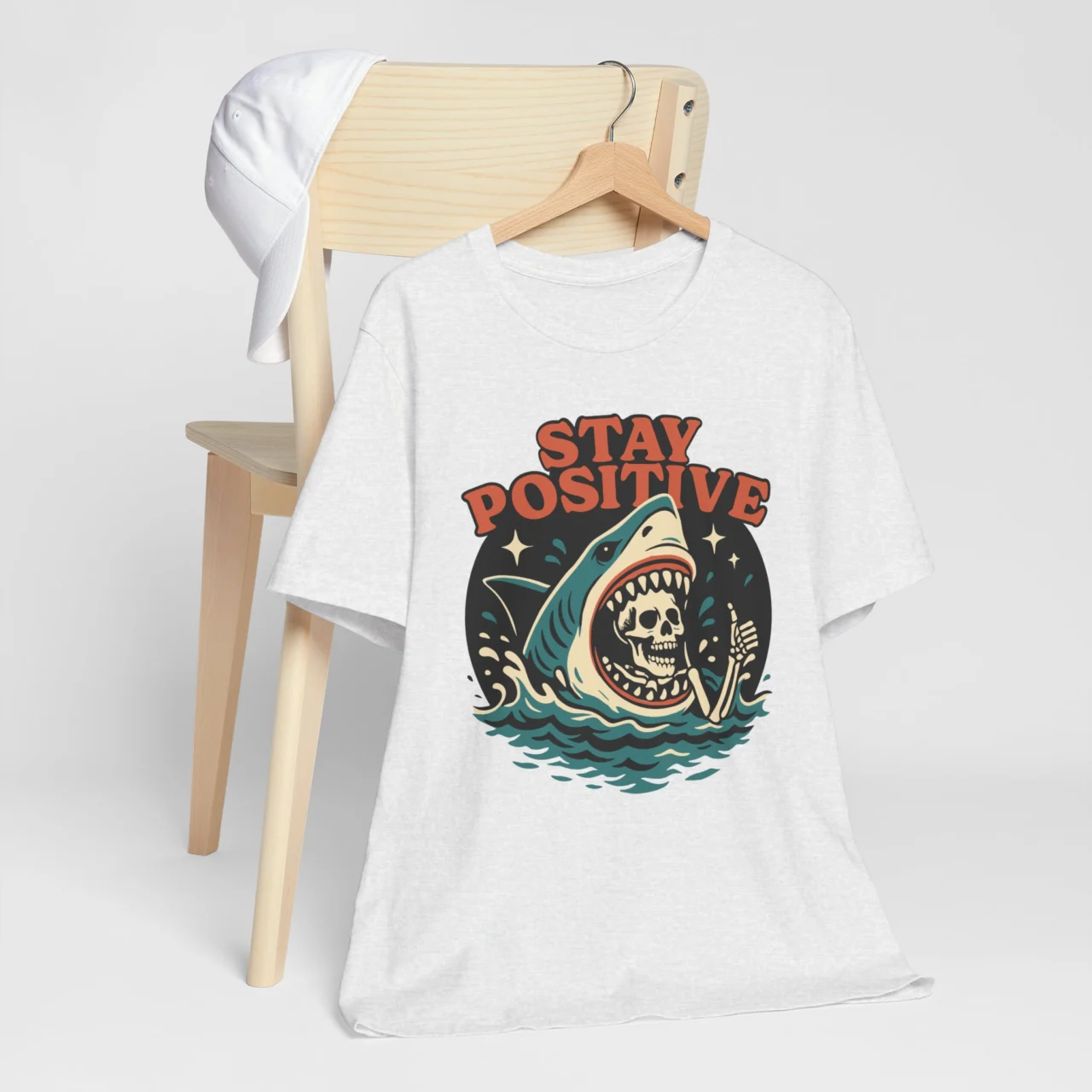 Stay Positive Funny Shark T-Shirt – Shark Attack Graphic Tee