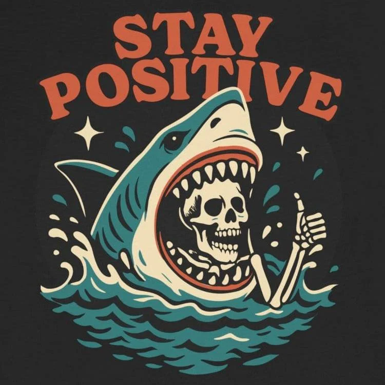 The Stay Positive Funny Shark t-shirt is dark humor at its finest, retro comic art meets life advice gone horribly wrong. Whether you’re into sharks, sarcasm, or ironic motivational quotes, this one hits. Perfect for ocean lovers with a sense of humor, casual wear, or as a funny gift for that one friend who thrives on chaos.