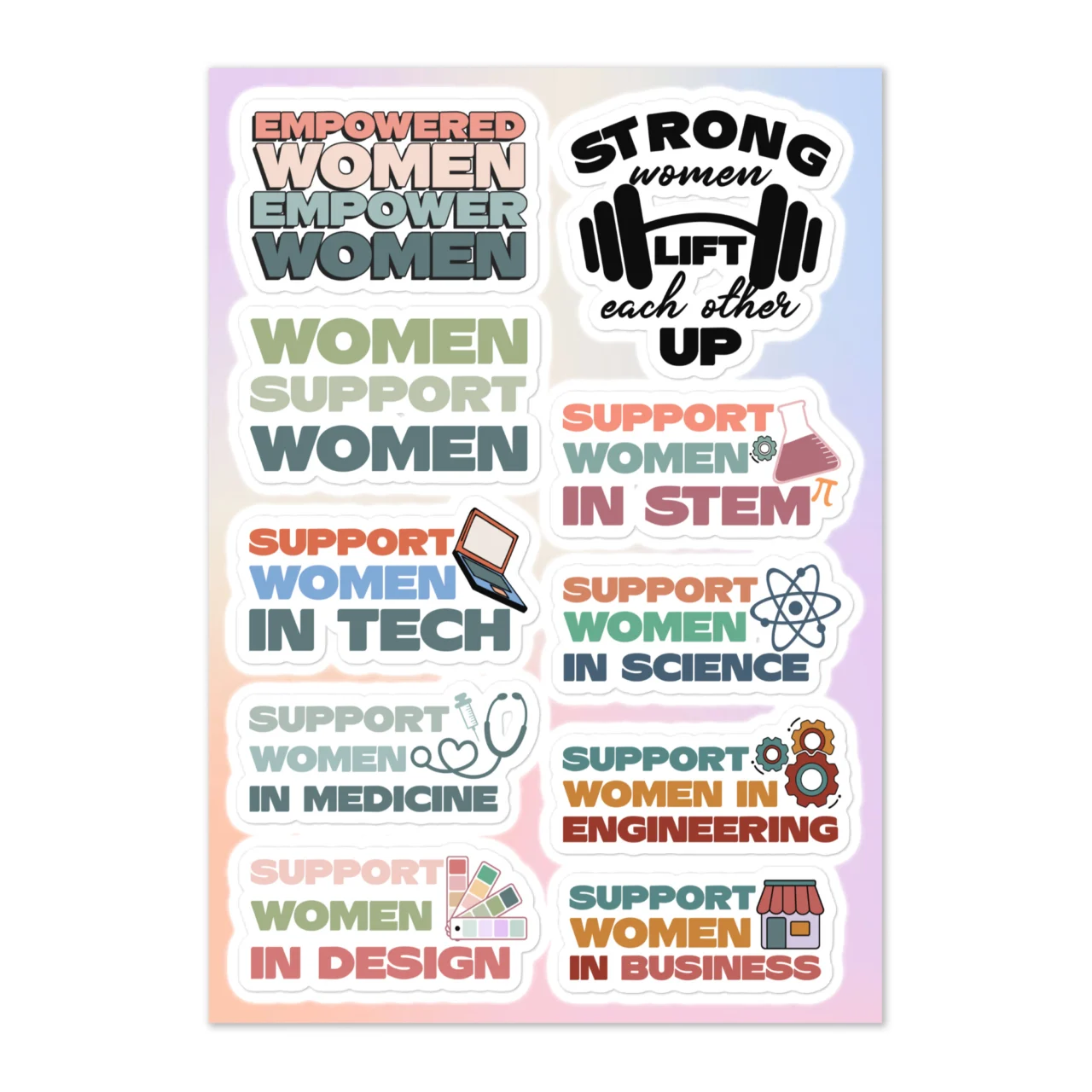 Support Women Sticker Sheet – ‘Empowered Women Empower Women’ ‘Support Women In STEM Tech Science’ – Girl Gang Women Career Decals – Feminist Professional Sticker Pack