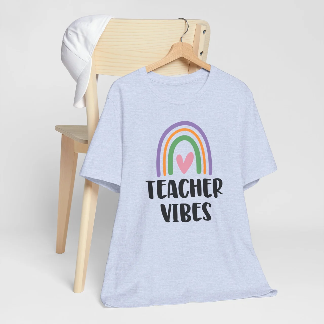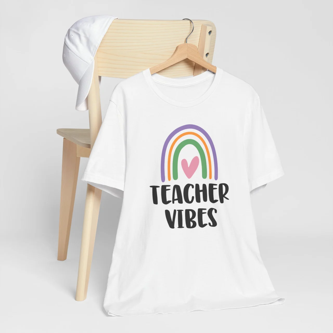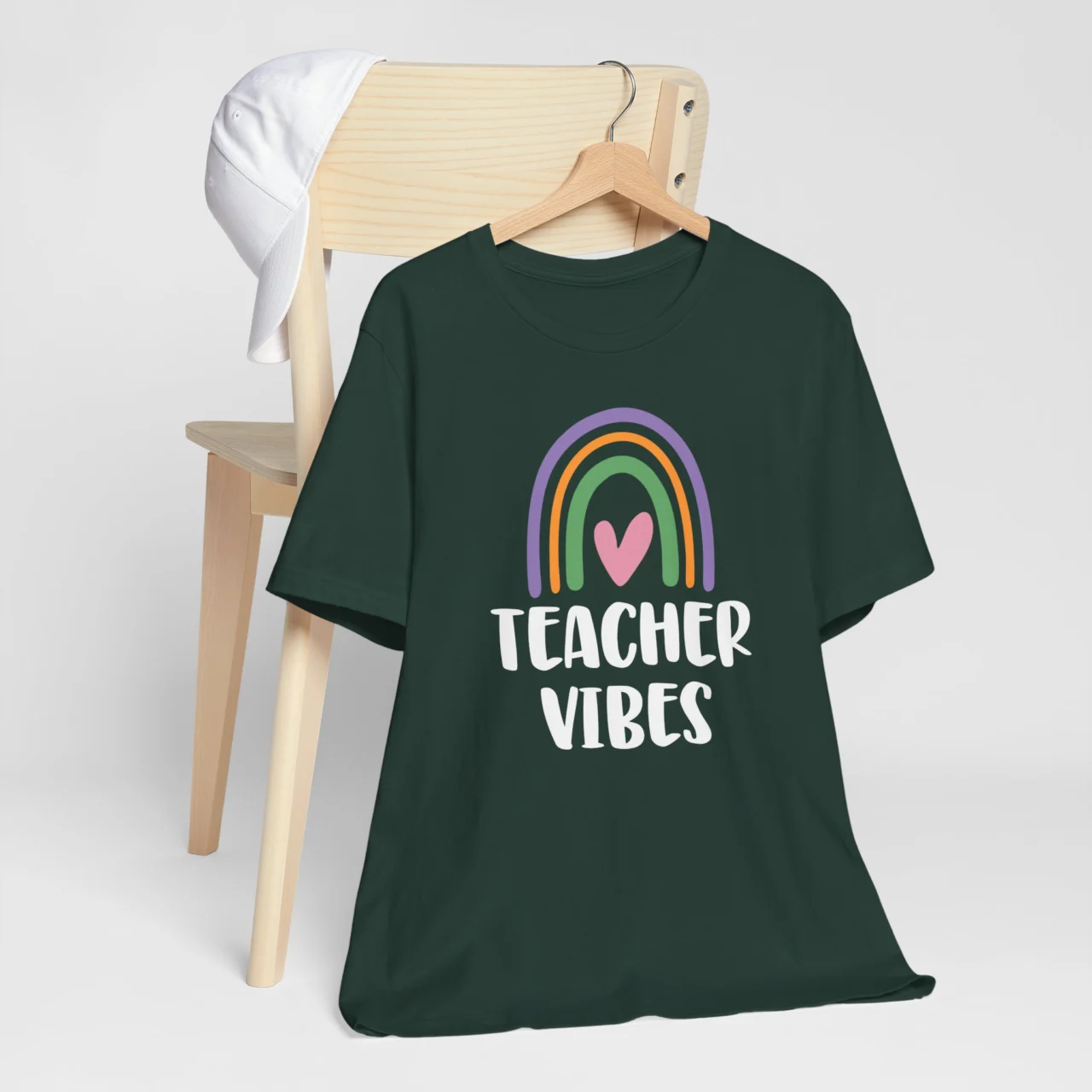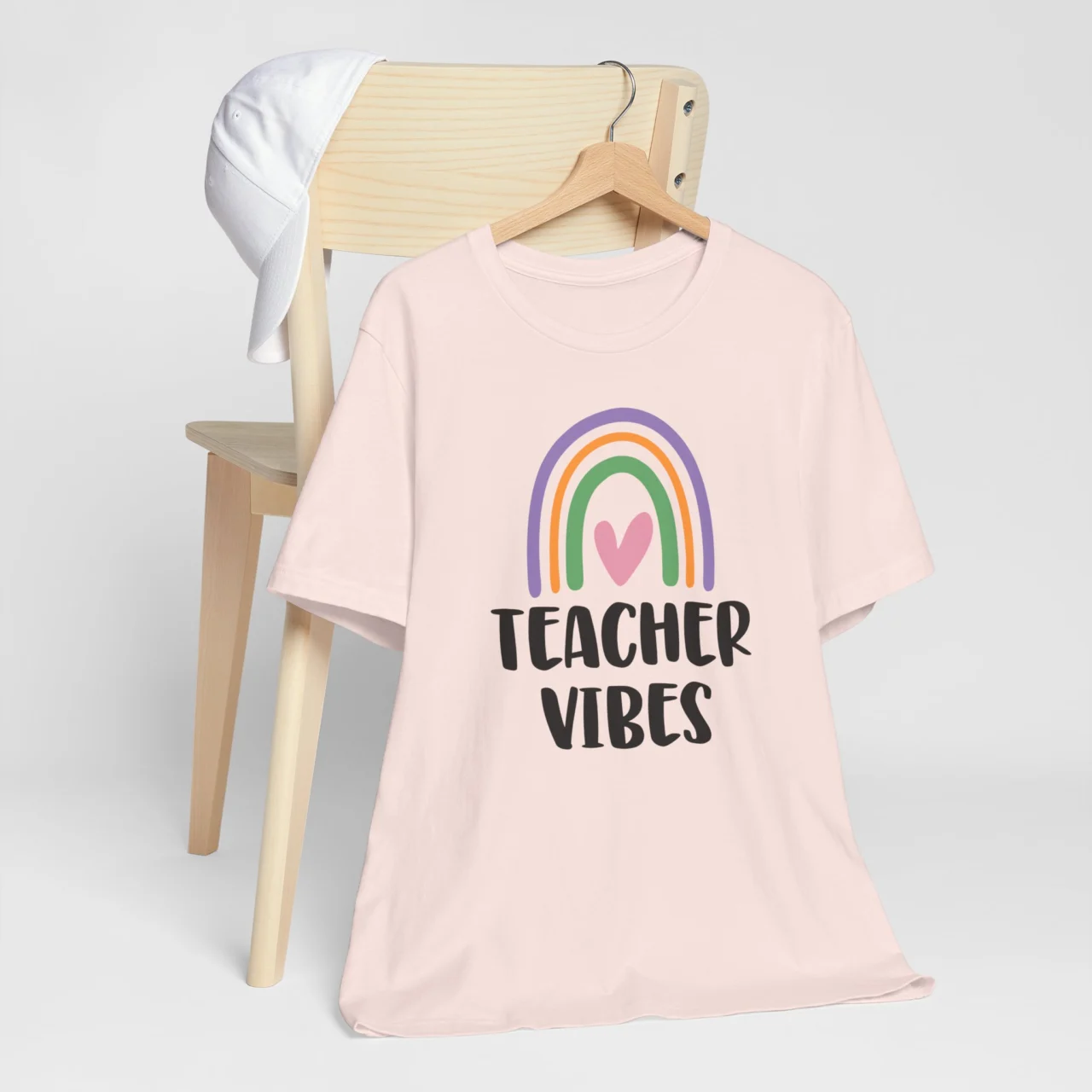 Teacher Vibes Shirt – Rainbow Teacher Tee, Fun Educator Appreciation Shirt, Positive Classroom Graphic Top, Boho Teacher Life Gift, Retro Teacher Shirt, Boho Teacher Shirt, Gift for Teachers, Summer Outing Shirt – TeesLanding