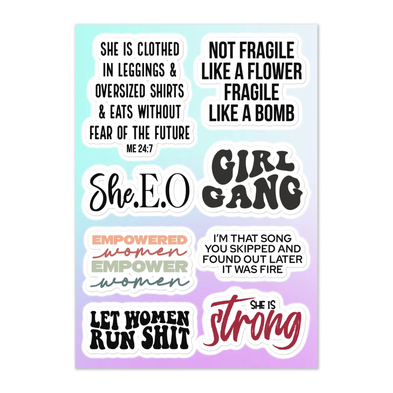 The Women Empowerment Pack is the sticker sheet for women who have stopped waiting for permission and started running the show. These eight designs celebrate the confidence, strength, and unapologetic power of women who know exactly who they are and have no intention of making themselves smaller for anyone.