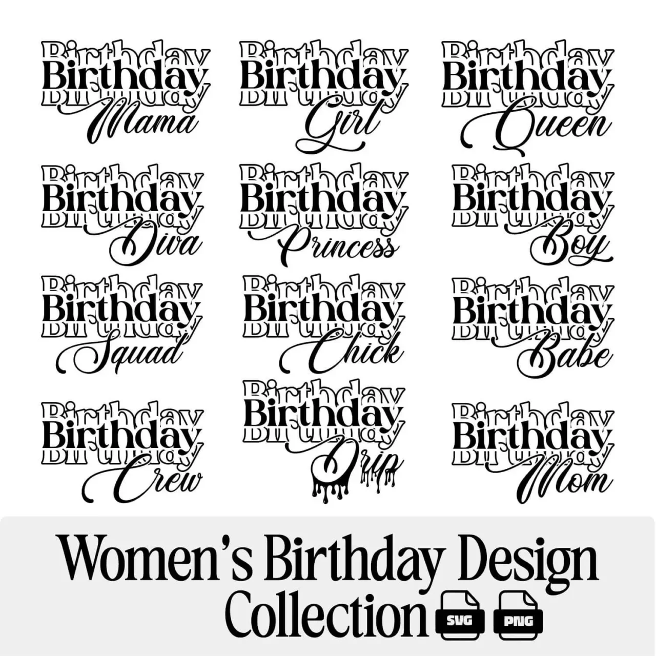 Women’s Birthday Girl SVG PNG Design Bundle – 12 Girly SVG & PNG Files for Custom Birthday Gifts & Crafts