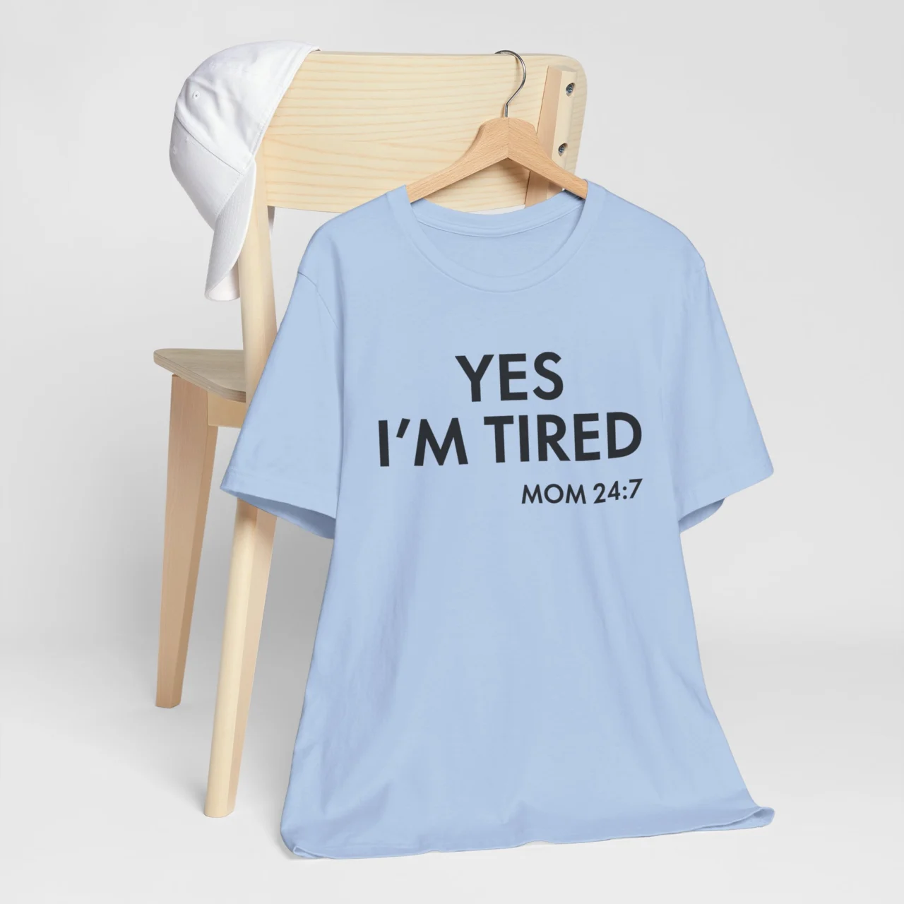 Yes Im Tired Mom 24 7 T-Shirt – Funny Mom Life Tee – Parenting Humor Shirt, Funny Mom Shirt, Gift for Mothers, Tired Mom T-Shirt, Birthday Present, Casual Everyday Top, Mama Sayings Tee – TeesLanding